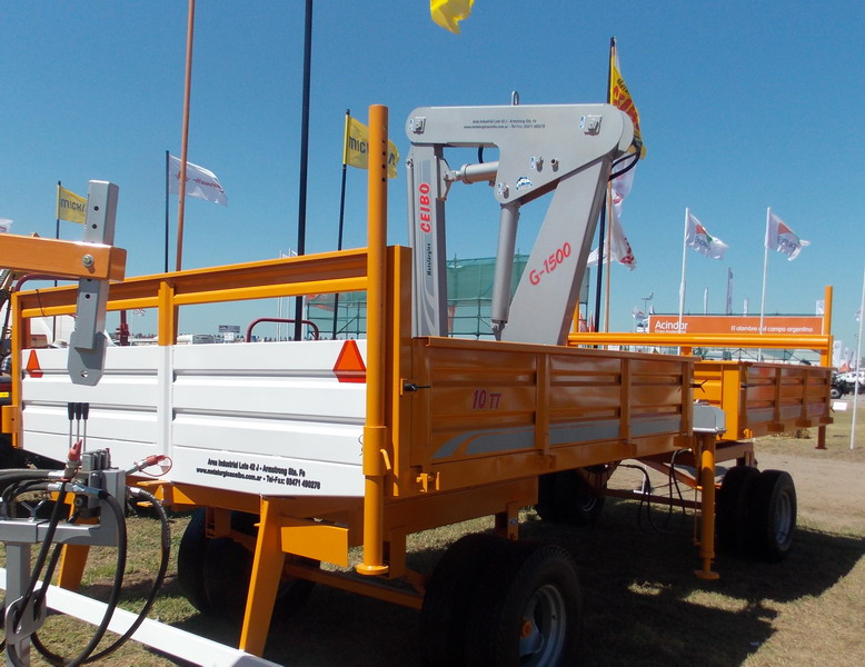 Ceibo presentó un acoplado playo de 10 toneladas, combinado con una grúa G-1500. Se usa para carga de bolsones y otras aplicaciones. Ver nota