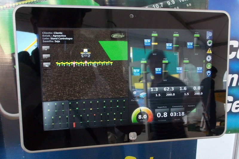 SIID. Presentó el computador multiplataforma ControlAgro Línea 5000, con formato tipo Tablet, pantalla de 10 pulgadas y sistema Android. También desarrolló un sistema integrado de piloto automático, banderillero y corte por secciones.